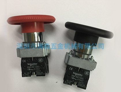蘑菇头是采用释放臂和锲形机构的设计,可不用任何工具方便地装拆操作器和触点组。当将开关安装到控制盘时,可以不考虑其厚度。安装操作器时,只要在安装板后方拧上一个锁紧螺母,不需任何调整。