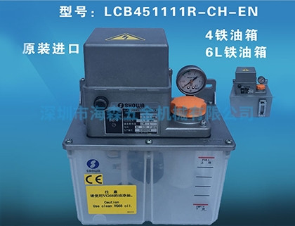SHOWA LCB45111R-CH机床集中润滑泵广泛应用于立式加工中心机,高速机导轨润滑。低能耗高效环保,精度高,性能稳定,使用寿命长。LCB45111R-CH-参数:排出量:0.1L/min 50Hz、排出压力:1.5Mpa、电压:220V、频率:50Hz、电流:0.7A、转速:2500rpm、功率:17Wx2P、绝缘分级:E种绝缘。