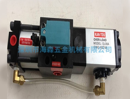 KAN-TOU OL08A过载油泵是安装使用于冲床上,用以检知滑块油压缸内部的超油压压力,当超负荷情形发生时,使油压压力能在千分之三秒内迅速被泄放,超负荷发生时,微动开关产生电气信号,通知冲床紧急停止运转,以保护冲床和模具。