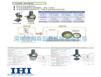 IHI ACG系列气动泵-IHI ACG系列泵浦根据使用的定量阀种类,包括有ACV和CVM两个系列,此外,您还可以根据使用流体及用途选择合适的类型。定量阀采用柱塞(容量计量)式,因此不受使用